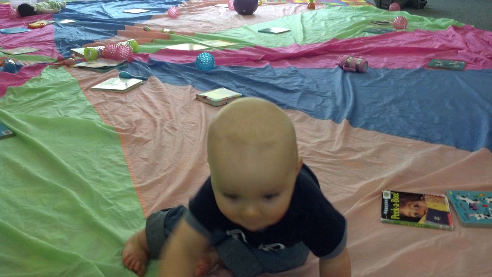 This is a bad picture from Story Time at the Library for babies 0-1. It's so much fun. We sing songs and the babies get to play with toys and interact.